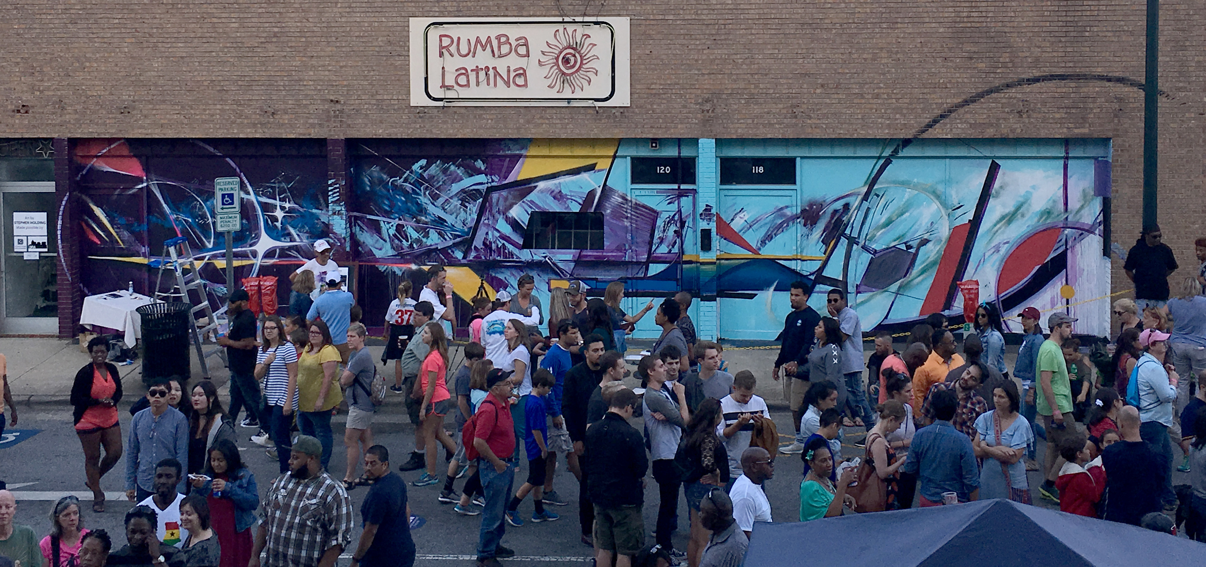 This past Summer I was pleased to be invited to Greensboro North Carolina to paint a mural during the National Folk Festival.